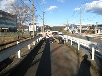 街路樹が落葉しきったたこの時期なので 社屋前の国道 歩道を本日、清掃しました